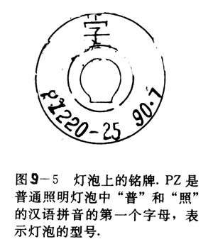 实验电灯泡上标着“pZZ220-25"(图9-5),表示额定电压是220伏,额定功率是25瓦.电烙铁上标着“36V100W”或"220V60W",也是指的额定电压和额定功率。